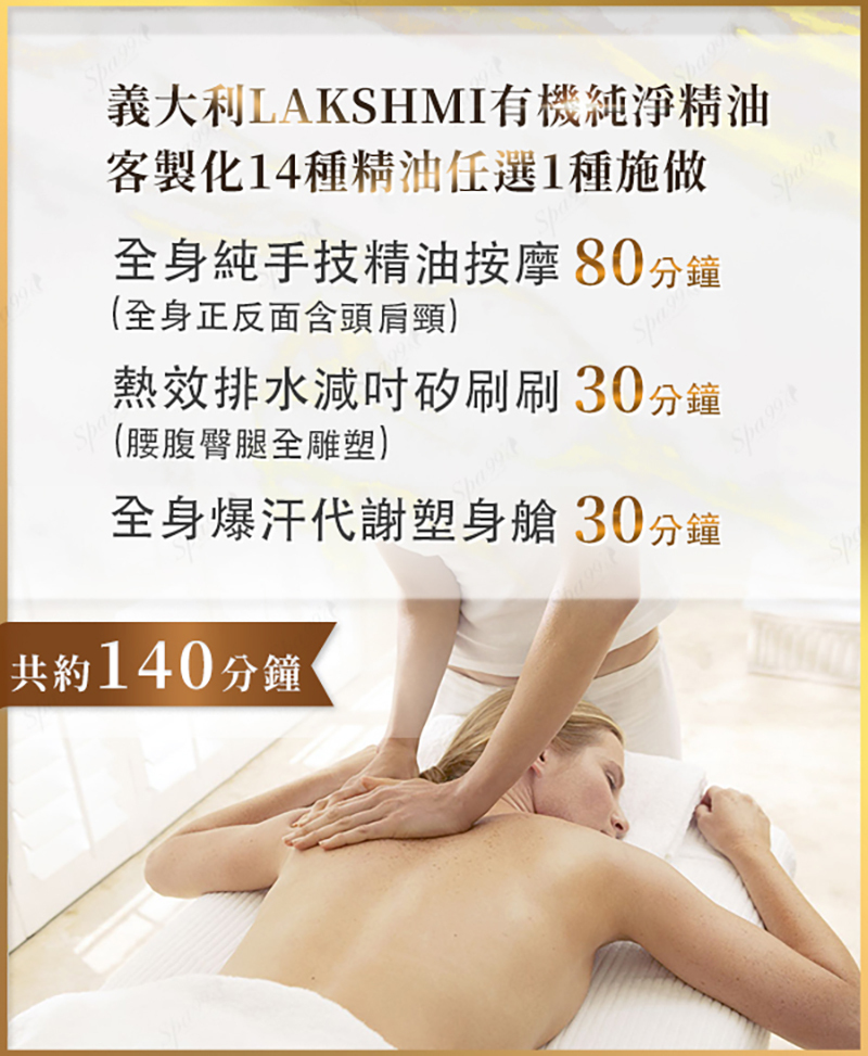 獨特按摩手法,改善全身循環,並可疏通氣結,消除疲勞、活絡筋脈、提昇免疫力。使用熱能傳導,再以熱能深層手法滑動,使精油迅速進入體內,放鬆緊繃的肌肉。