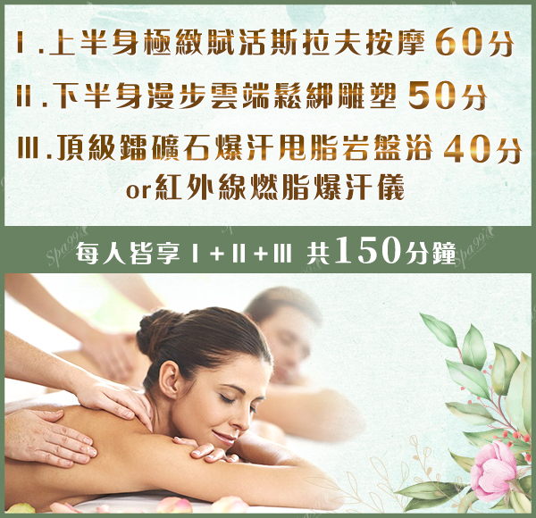 Ⅰ.上半身極緻賦活斯拉夫按摩60分(背部鬆筋+全背精油芳療舒壓+肩頸背穴點放鬆+頭部行氣舒刮按摩)
