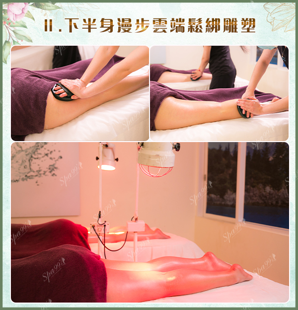 Ⅱ.下半身漫步雲端鬆綁雕塑50分(精油手技按摩10分+蠍尾魔刷鬆綁20分+HC消腫熱塑20分)