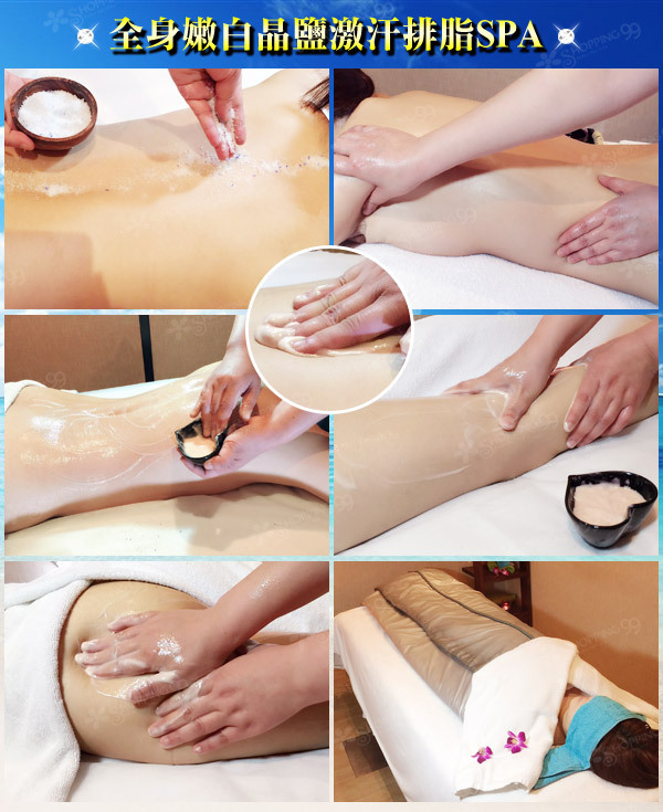 ✔︎全身嫩白晶鹽激汗排脂SPA50分鐘(全身正反面去角質25分+HC爆汗代謝25分)