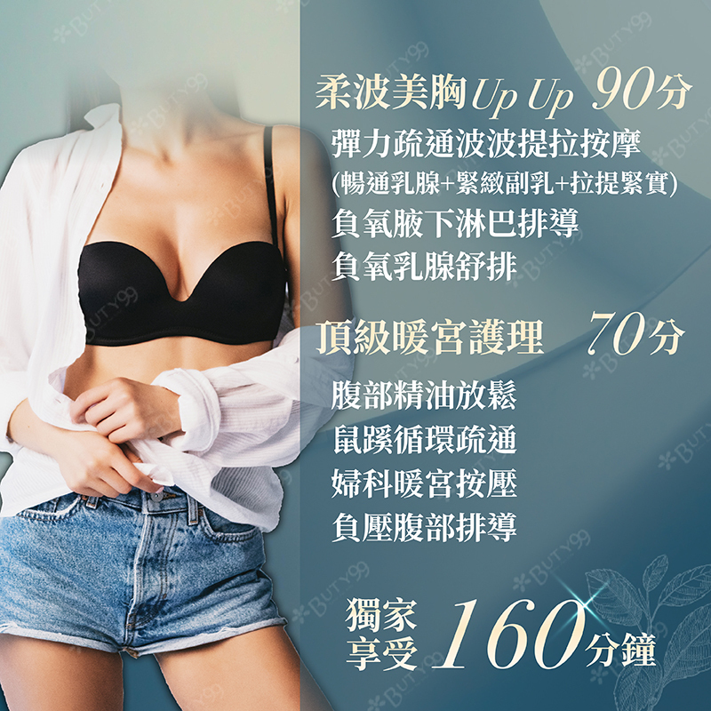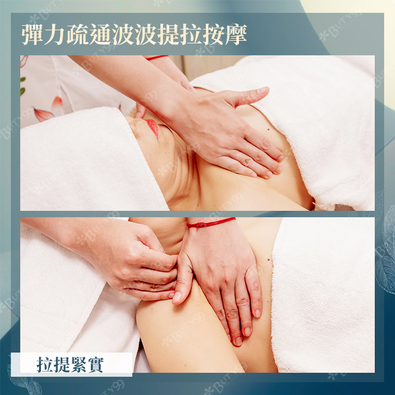 透過手技疏通技巧,於乳房外側環型、前後推揉方式進行按摩,有助舒緩乳腺阻塞,使乳腺疏通、漲大,可加強雌激素分泌來達到豐胸效果!同時幫助通淋巴,改善胸型、消除副乳困擾~