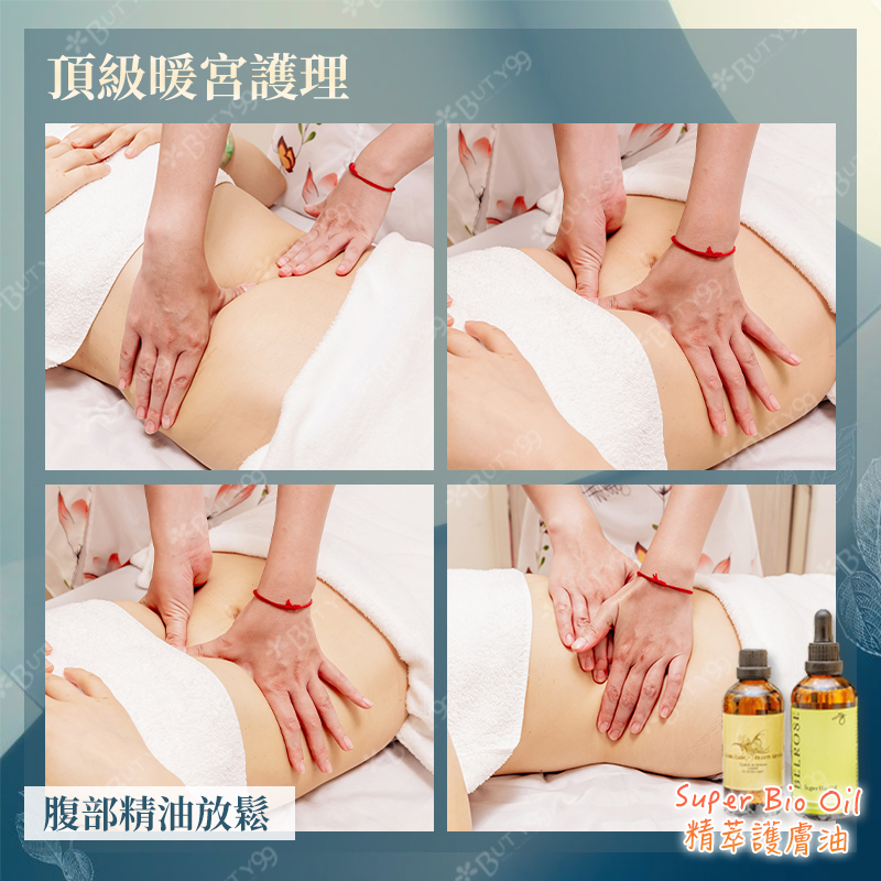 專注於舒解腹部壓力,透過嚴選澳洲精油融合專業手技,以肚臍為中心使用『壓、推』手法於腰部反覆按摩,幫助舒緩腹部緊繃、釋放壓力,使您身心進入完全放鬆狀態!