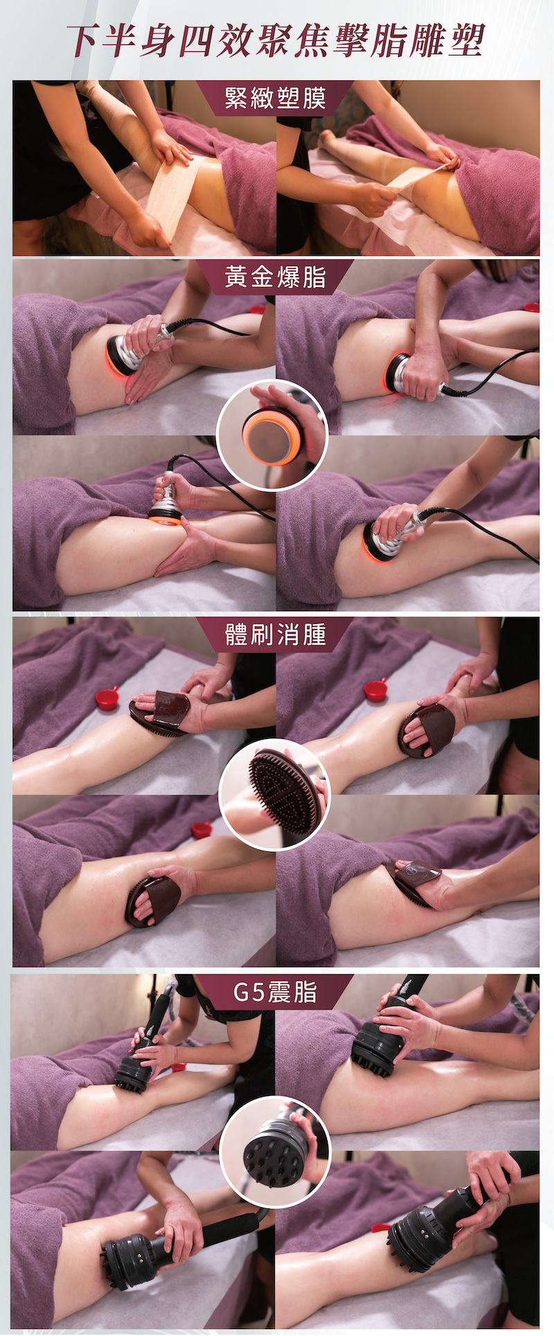 最後以緊緻膜包裹,提升肌膚彈性。每一步驟都讓妳的下半身回復緊實與輕盈,40分鐘,為塑造完美輪廓😍