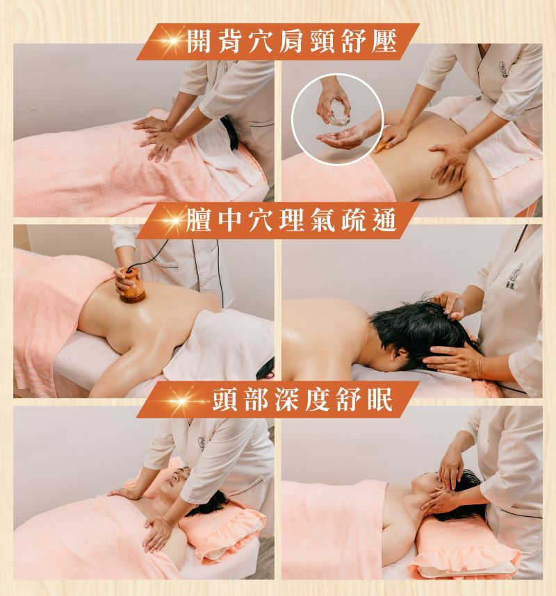 溫暖的手技輕柔按壓,從深層喚醒體內能量,疏通經絡,帶來舒適的溫暖感受,結合手技與溫灸的雙重效能,溫熱能量深入肌理,放鬆身心的每一吋緊繃,讓身體暖意滲透,電熱毯的持續溫熱效果,延續溫灸後的暖宮感受,讓全身放鬆倍感舒適。
