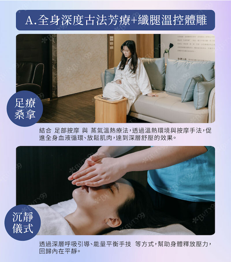 ✨A.全身深度古法芳療+纖腿溫控體雕