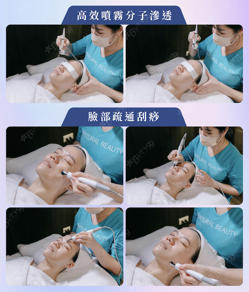 接下來, 透過高效噴霧分子滲透技術,加速肌膚吸收養分,再配合臉部刮痧舒緩,幫助疏通經絡,提亮氣色✨