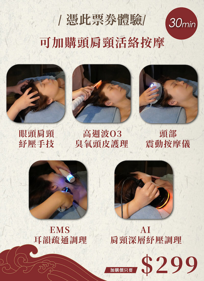 首先,透過專業頭部手技,釋放顱內壓力與情緒緊張,改善睡眠與思緒雜亂狀況!