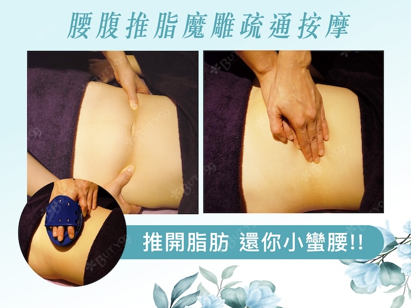 🔥腰腹推脂魔雕疏通按摩-20分鐘(精油純手技按摩10分+體刷消贅肉10分)