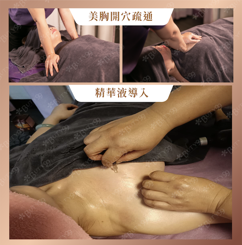 美胸開穴疏通👉美胸手技按摩👉精華液導入