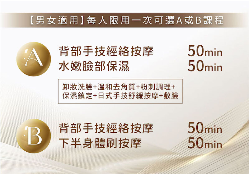 1.每人最多限用1張課程券,男女性皆可使用(孕婦及生理期者不適用;男性則需有女性友人陪同)。