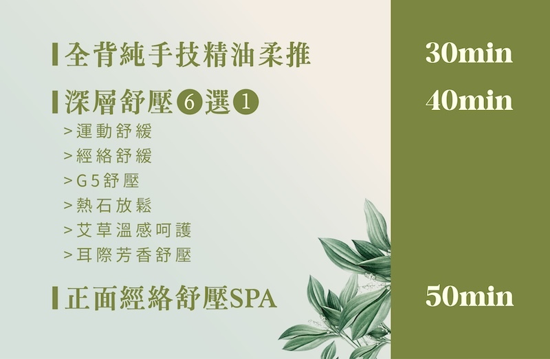✔️ 正面舒壓SPA-完整體驗讓身心更加舒適平衡