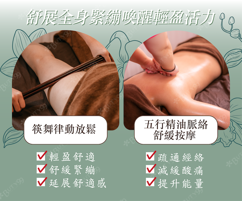 ✔️臀腿五行精油脈絡舒緩-沿下半身脈絡深層推展