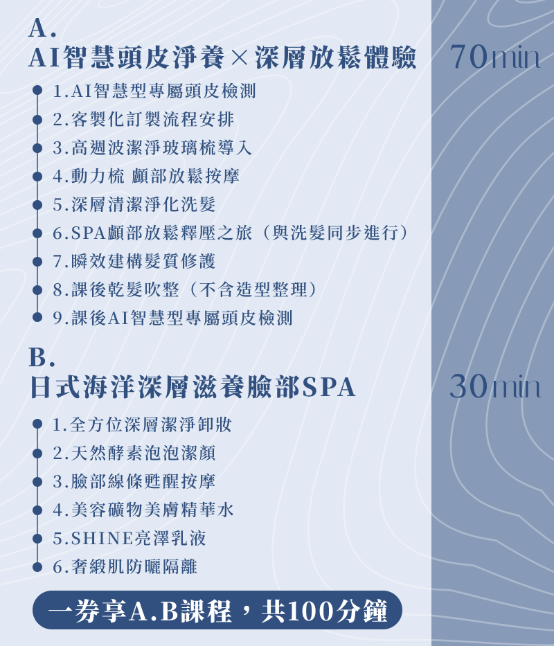 【 BEAUTYAGENT頭皮建構美學中心】全台首創專注於頭皮健康與秀髮美學的管理中心,結合AI 智能頭皮檢測與客製化護理方案,針對乾燥、油性、敏感乃至落髮等頭皮問題進行深層調理。課程如保濕舒眠、韌髮生薑護理及抗屑止癢療程,搭配專業手技與香氛,打造健康頭皮與亮麗髮質。致力將頭皮管理化為日常保養的一部分,讓每個人從根本開始展現自信與美麗。